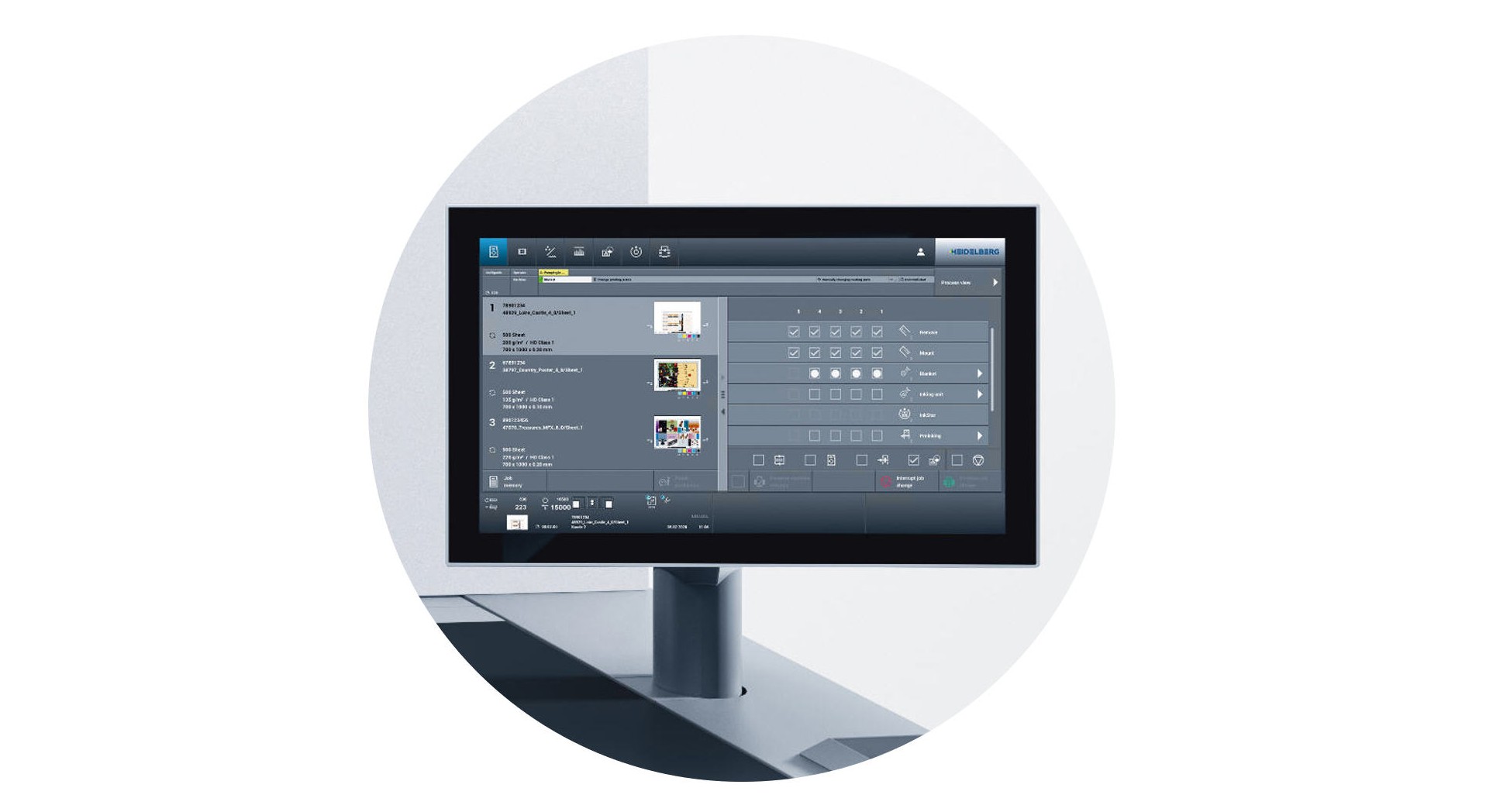 Das Speedmaster Operating System mit der intuitiven Touchbedienung am 24 Zoll Multi-Touchscreen macht die komfortable Steuerung der Speedmaster zum Erlebnis. Einstellungen können mit einem Klick aufgerufen werden, die skalierbare Bedienung lässt sich je nach Anforderungsprofil flexibel anpassen (Smart Setup).